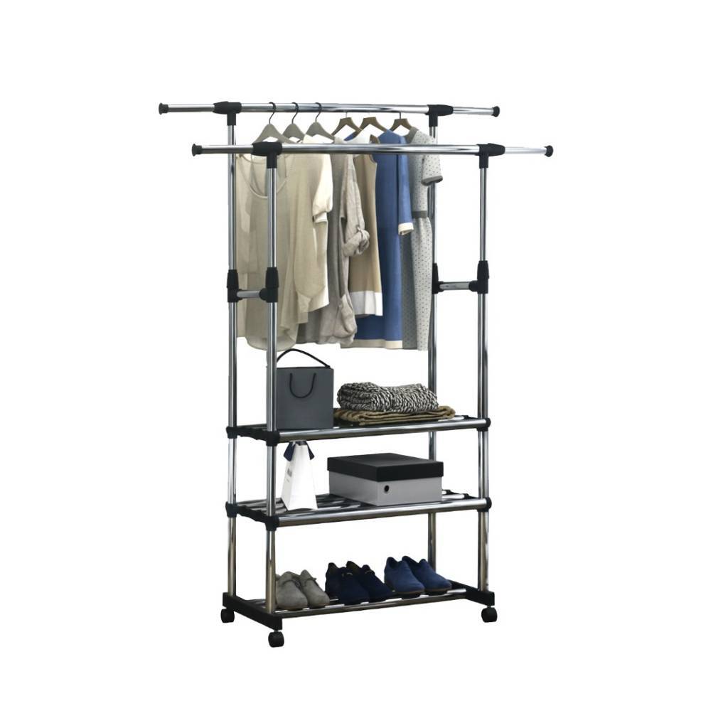 Perchero doble con 2 niveles y ruedas